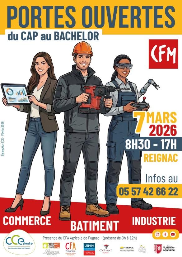 Lors de cette journée portes ouvertes, les visiteurs auront l’opportunité de découvrir l’ensemble des formations proposées par le CFM de Reignac, du CAP au Bachelor.